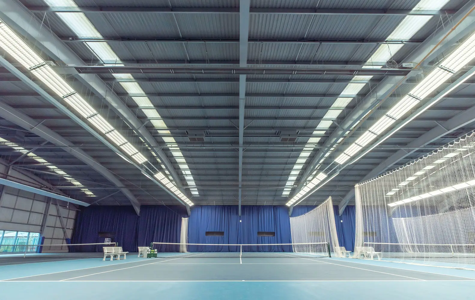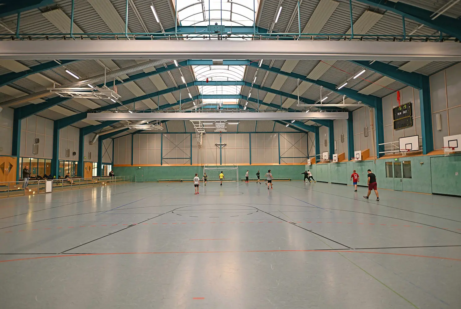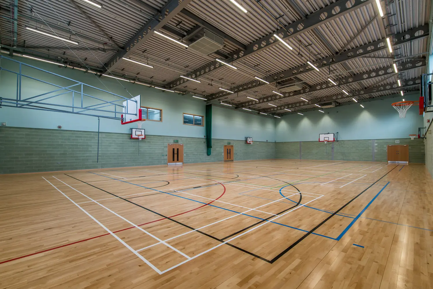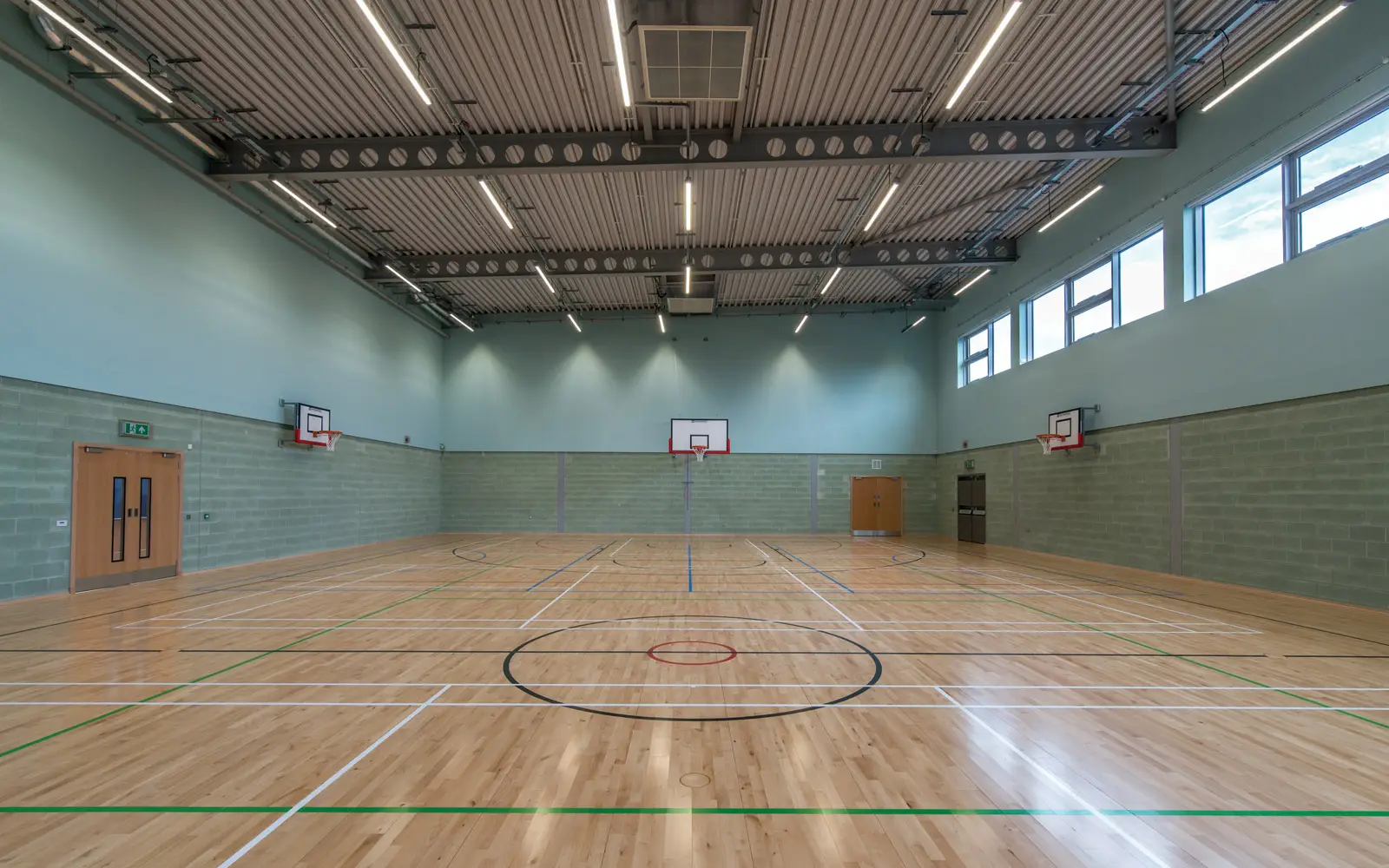Au niveau secondaire et supérieur, les salles de sport dédiées présentent des défis plus importants pour les concepteurs d'éclairage. Certains sports sont rapides, comme le badminton ou le cricket en salle, tandis que d'autres sont plus lents. Dans certains sports, les participants regardent principalement vers le bas ou sur les côtés (par exemple, le football en salle), ce qui nécessite un bon modelage et un bon éclairage vertical, tandis que dans d'autres, les participants regardent vers le haut (par exemple, le badminton), ce qui signifie que des luminaires mal positionnés peuvent créer des problèmes d'éblouissement.