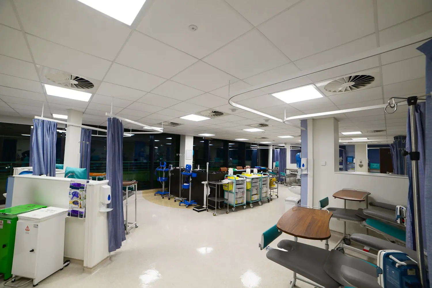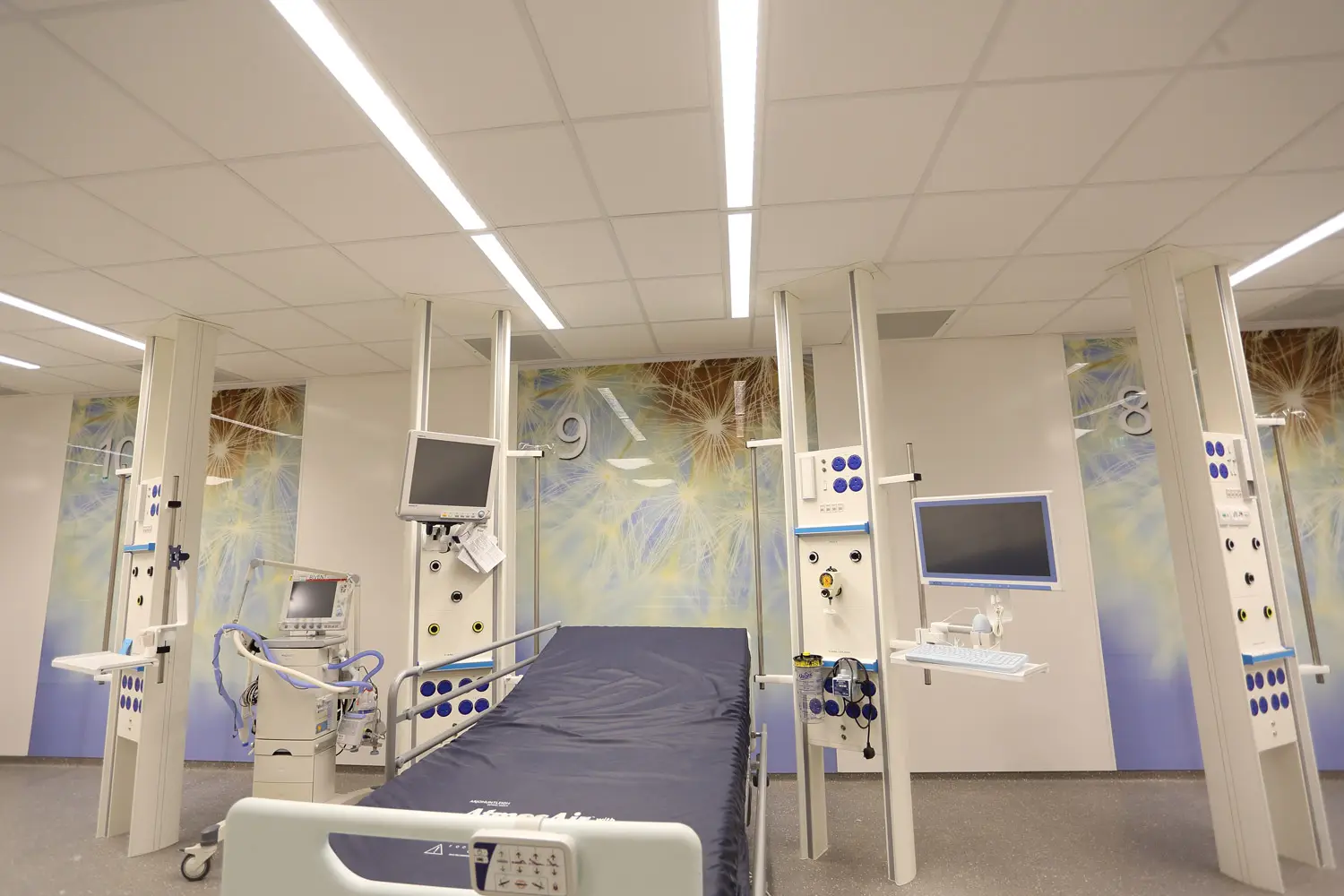 L'éclairage dans les salles doit trouver un équilibre subtil entre fonctionnalité, esthétique et efficacité énergétique. L'intensité lumineuse doit être suffisante pour permettre au personnel soignant de prodiguer des soins, mais pas trop forte afin de ne pas perturber le repos des patients. Les besoins en éclairage dans les salles peuvent généralement être divisés en quatre catégories : éclairage général, éclairage des patients, éclairage nocturne et éclairage de surveillance.