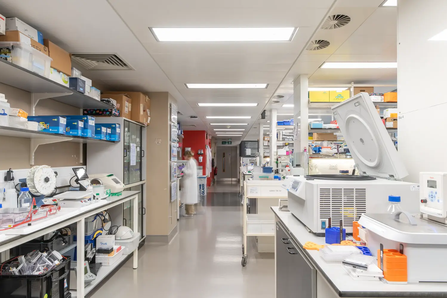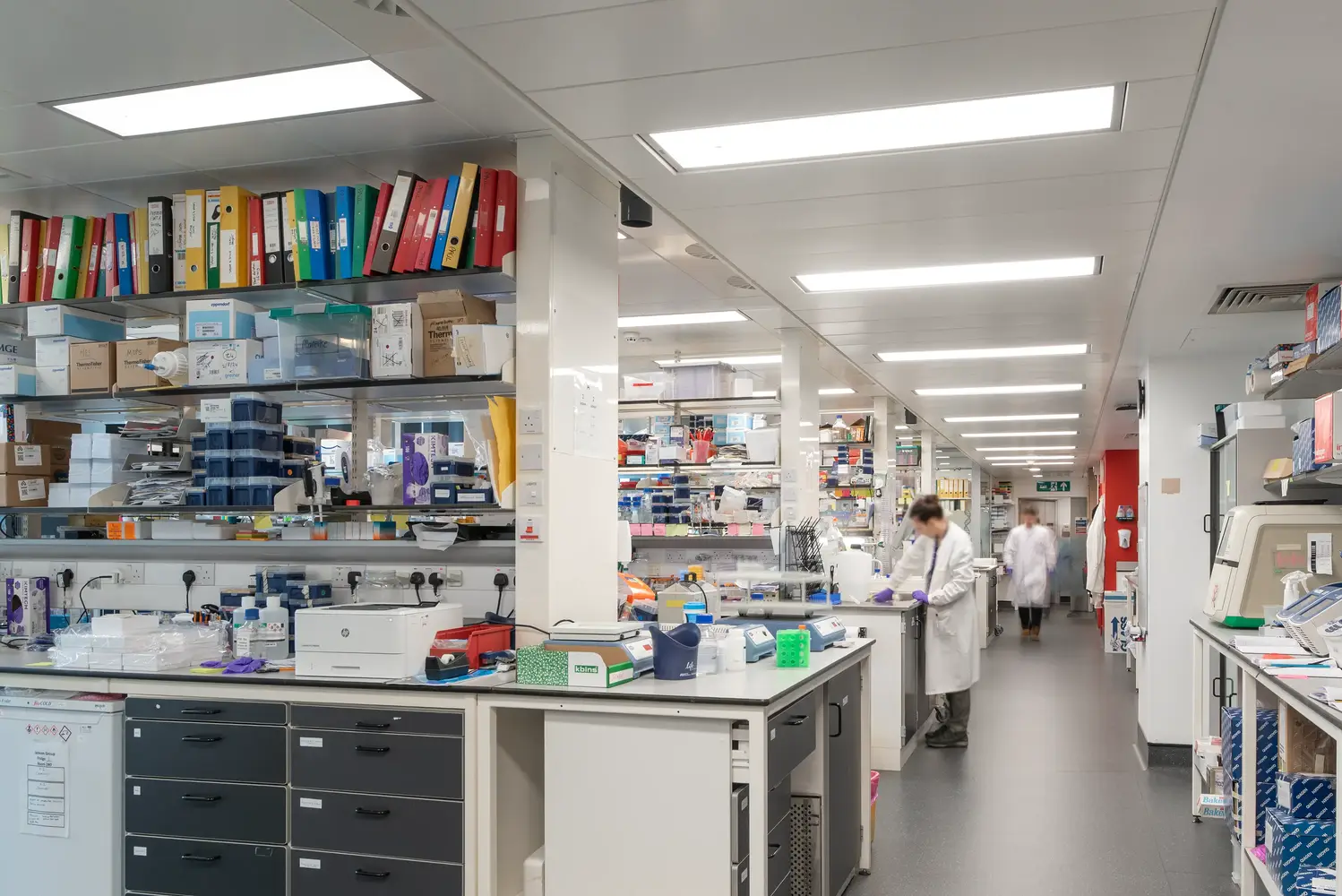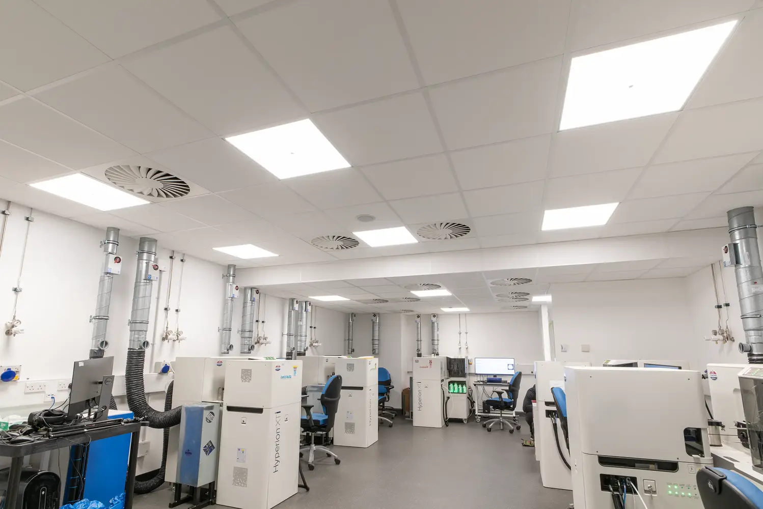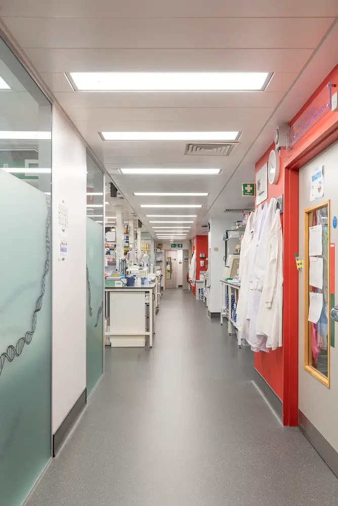 Thorlux a fourni une gamme complète de luminaires équipés de contrôles sans fil SmartScan, permettant des tests et des rapports d'urgence automatisés, avec une simulation de la lumière du jour programmable pour les zones de recherche spécialisées.