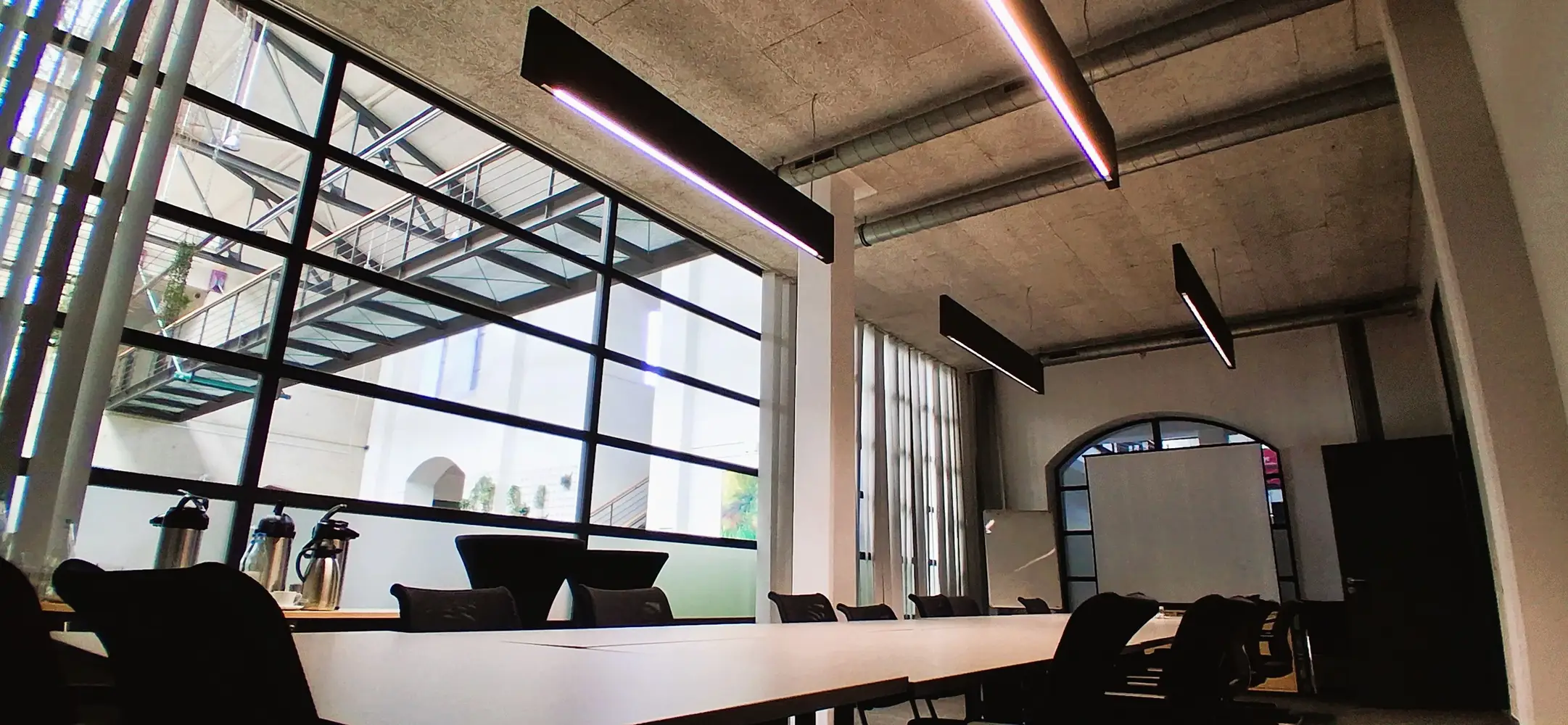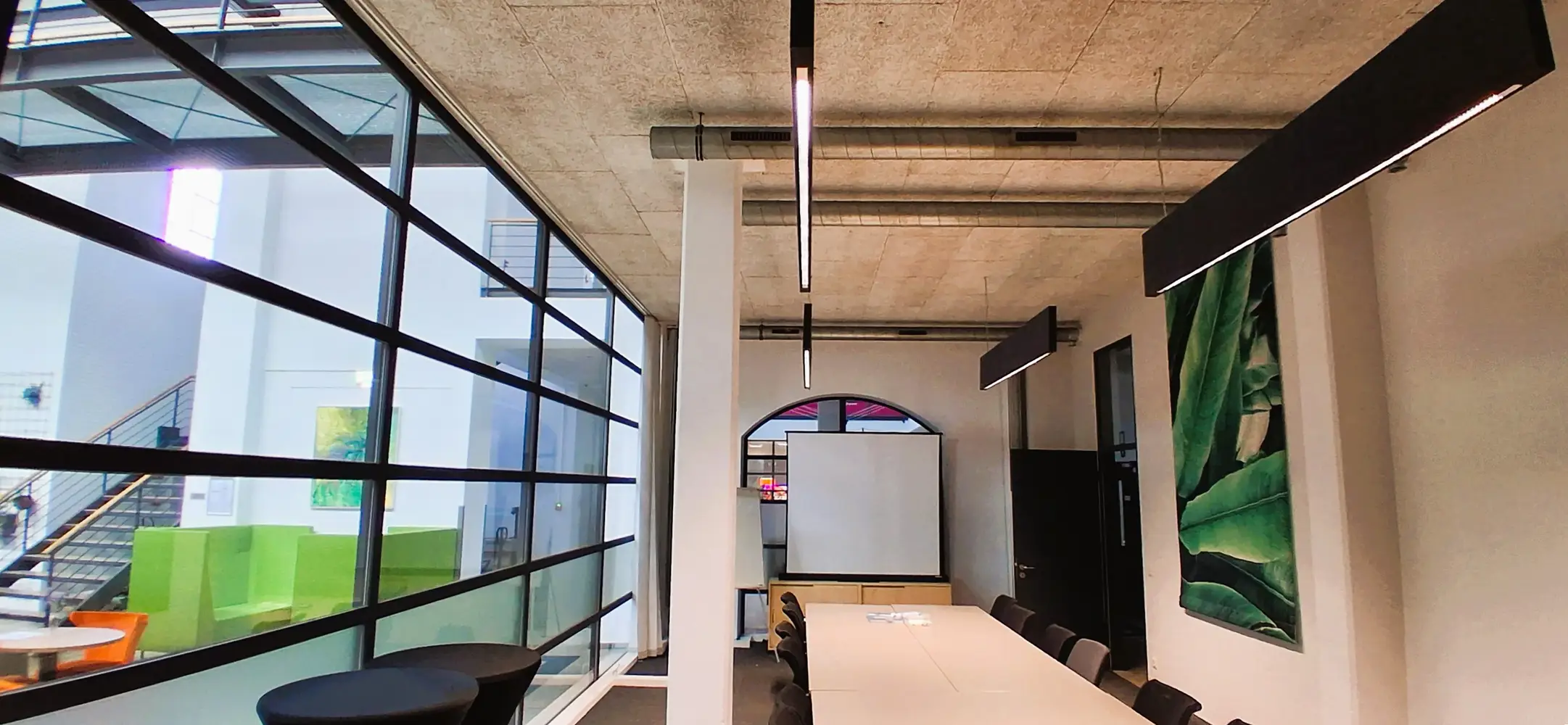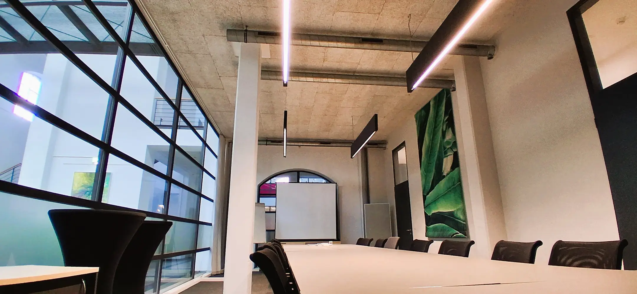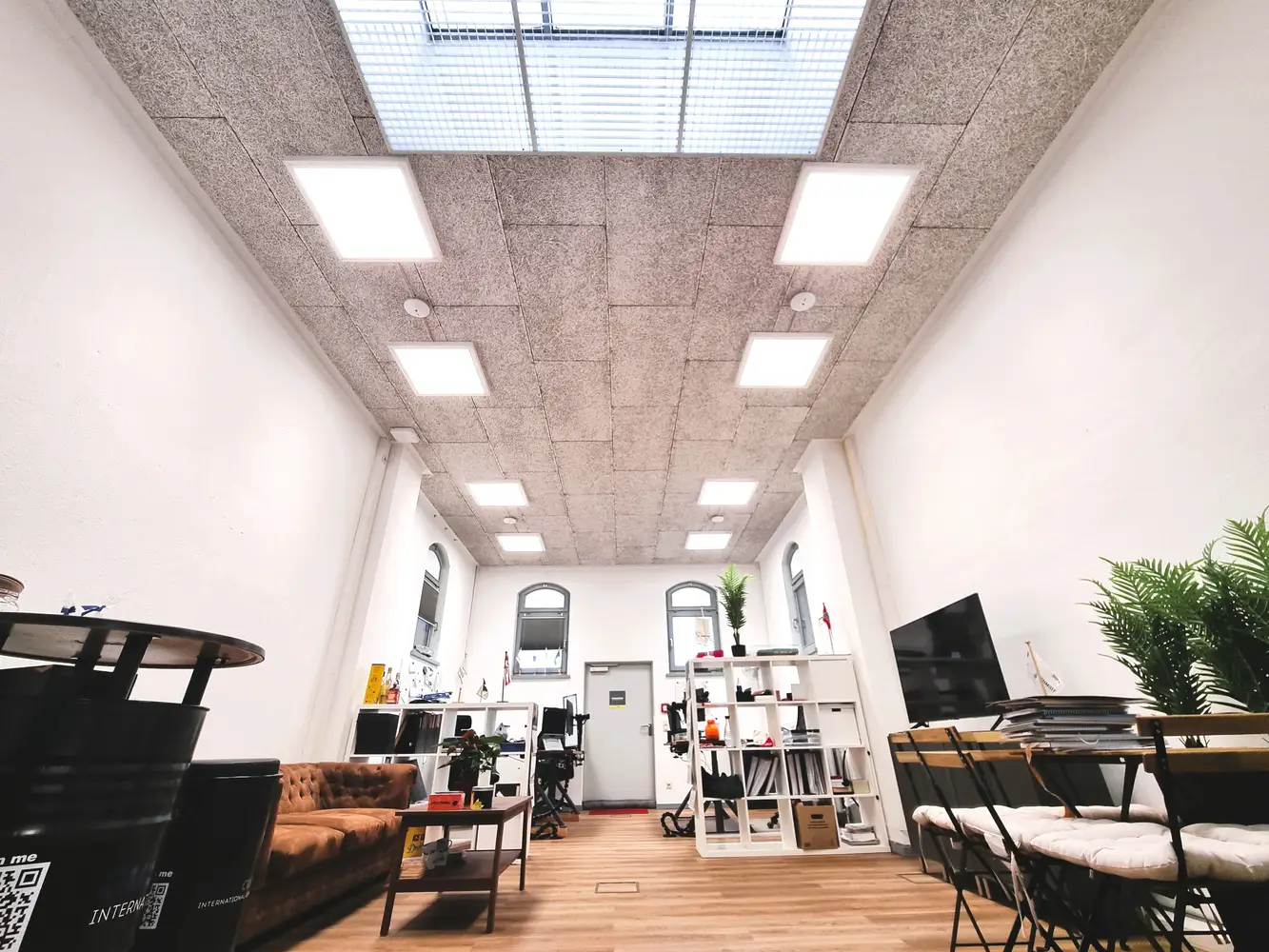 Le bâtiment Eurotec Looop est la pièce maîtresse du parc industriel Eurotec, avec un total de 6 500 mètres carrés d'espaces de bureaux et de coworking. Il y a 35 ans, ce bâtiment Art nouveau, qui servait autrefois de salle d'eau et de vestiaire aux mineurs, a été transformé en immeuble de bureaux moderne. Le système d'éclairage vieillissant, composé de tubes fluorescents et de lampes halogènes datant des années 1990, devait être modernisé. Le nouveau système d'éclairage devait offrir une efficacité et une durabilité maximales et, si nécessaire, être facilement extensible à d'autres parties du bâtiment. Il était essentiel de ne pas modifier le caractère des zones accessibles au public ni celui de la grande salle de conférence. Enfin, le nouveau système d'éclairage devait être facile à utiliser pour le gestionnaire du bâtiment et fournir des informations de surveillance, de rapport et de maintenance pour chaque luminaire. Thorlux Allemagne a mené une étude détaillée sur place et un nouveau système d'éclairage contrôlé par SmartScan a été retenu. L'éclairage de la grande salle et des deux salles de conférence a été considérablement amélioré, et les luminaires fluorescents en saillie dans les couloirs ont été remplacés par des luminaires encastrés efficaces.