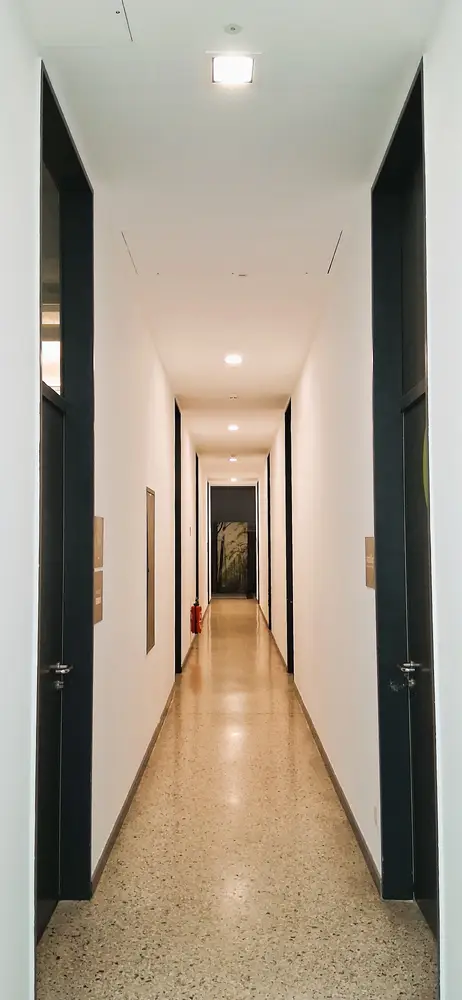 Toutes les issues de secours des zones accessibles au public ont été équipées de luminaires de secours Thorlux Lexi-65. De plus, pour le bureau d'un locataire unique du bâtiment, Thorlux a trouvé une solution personnalisée avec des luminaires à grille apparente et des capteurs externes qui forment leur propre réseau et ne font pas partie du système d'éclairage général.