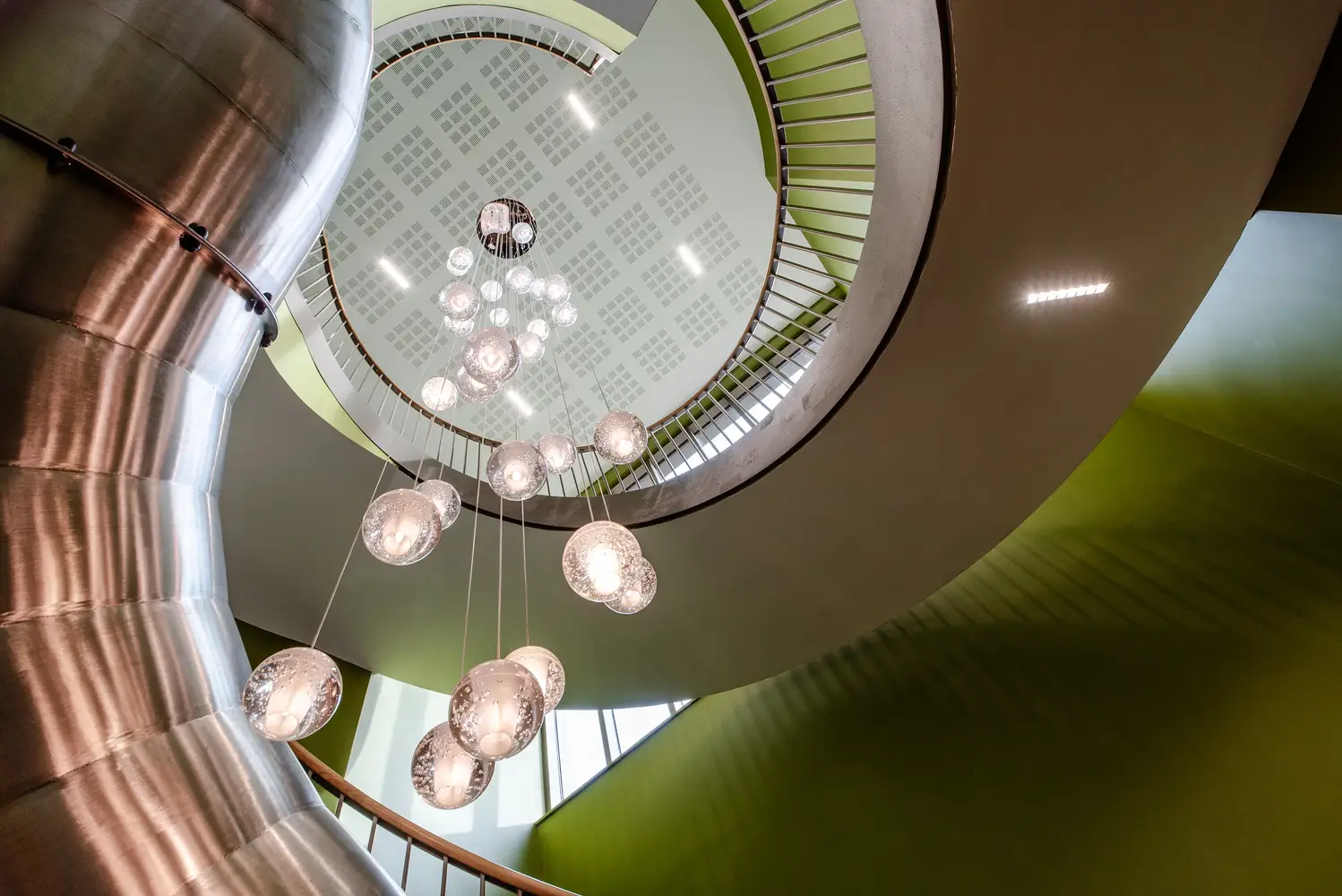 L'éclairage de l'ensemble du bâtiment est relié via le système de gestion d'éclairage sans fil SmartScan, avec des interrupteurs muraux SmartScan Scene Plate placés stratégiquement pour permettre la configuration de l'éclairage et le réglage de l'intensité. SmartScan offre un large éventail de rapports de performance, de surveillance de la présence et de contrôles d'éclairage, y compris la possibilité de préprogrammer les heures d'extinction dans les dortoirs des élèves.